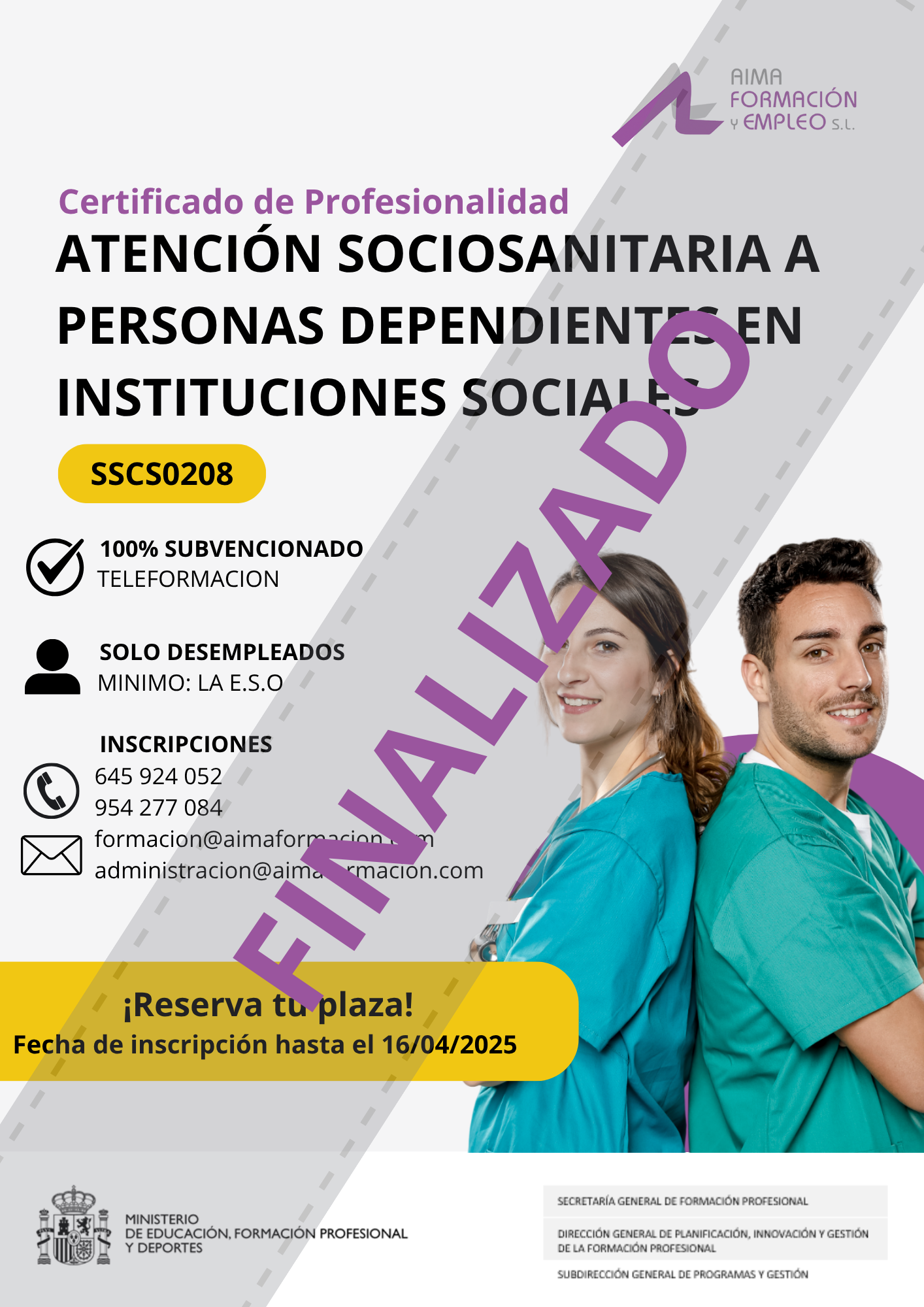 Este certificado de profesionalidad, (SSCS0208) ATENCIÓN SOCIOSANITARIA A PERSONAS DEPENDIENTES EN INSTITUCIONES SOCIALES, tiene como objetivo capacitar a los participantes para atender a personas dependientes en el ámbito sociosanitario en la institución donde se desarrolle su actuación, aplicando las estrategias diseñadas por el equipo interdisciplinar competente y los procedimientos para mantener y mejorar su autonomía personal y sus relaciones con el entorno.